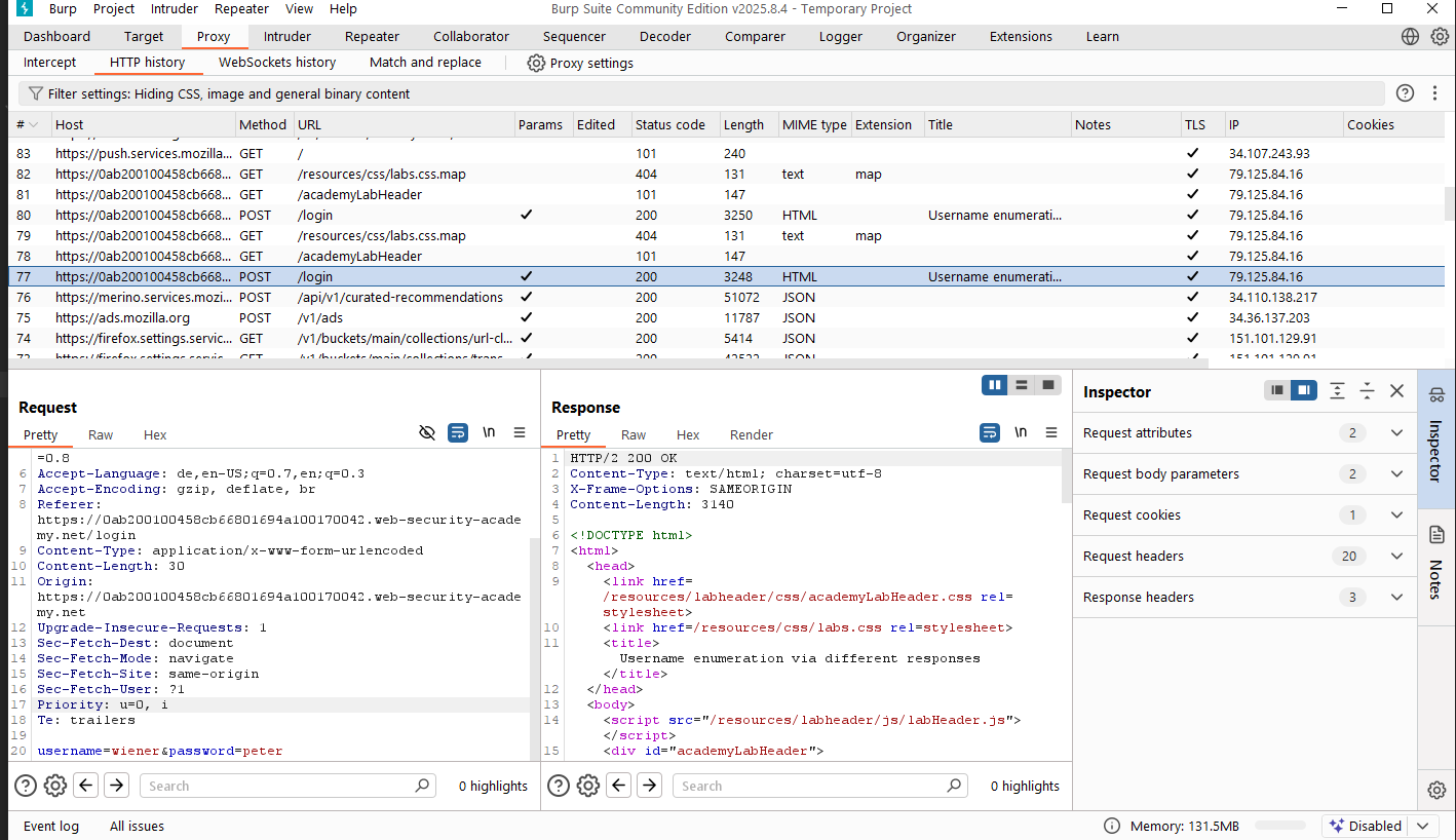 🖥️🧪Lab: Username enumeration via subtly different responses¶