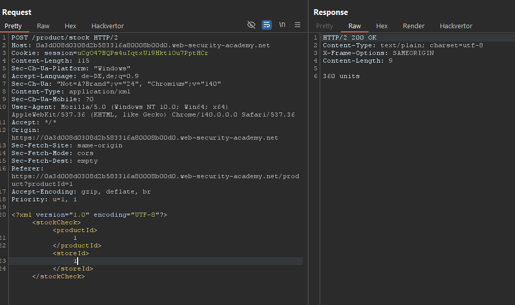 - Nach bisschen rumprobieren sehen wir, dass folgendes anschlägt. (Bei falscher Konstellation bekommen wir nur 0 Units als Response)
