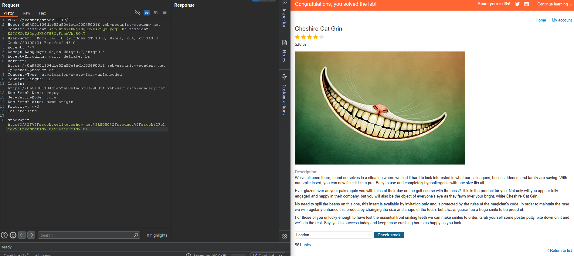 Lab: Basic SSRF against another back-end system¶